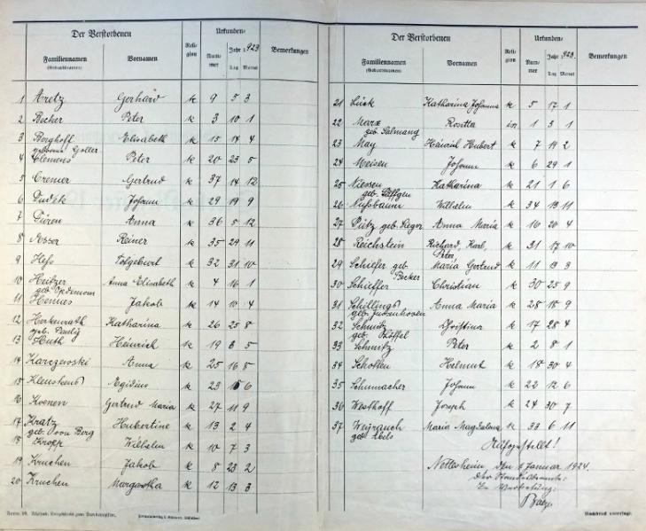 | aktuell | 19:29, 8. Mai 2013 | 1.625 × 2.252, 23 Seiten (6,97 MB) | KlausErdmann (Diskussion • Beiträge) | {{Information |Beschreibung = ;Standesamt Nettesheim, Sterberegister von 1923 |Quelle = Archiv im Rhein-Kreis Neuss |Urheber = |Datum = 1923 |Scans = Klaus Erdmann ''(Repro: 7. Mai 2013) |