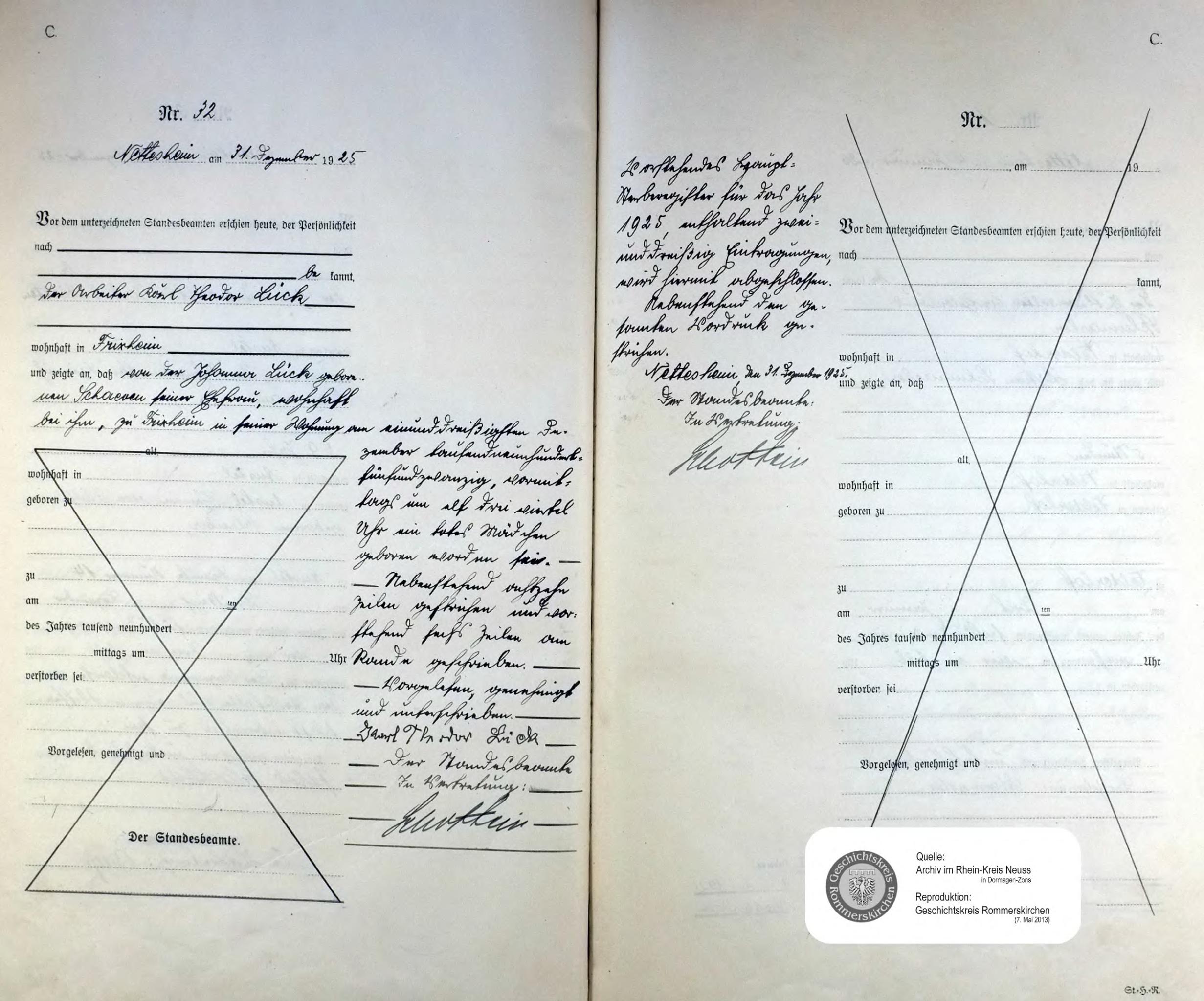 "Standesamtregister aus dem Gemeindearchiv Rommerskirchen"