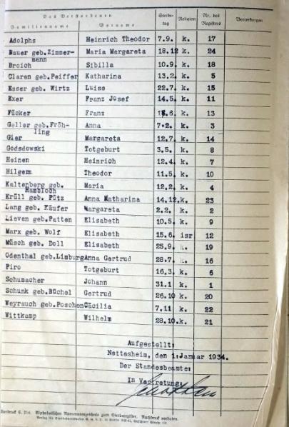 | aktuell | 11:55, 15. Mai 2013 | 1.601 × 2.329, 16 Seiten (4,45 MB) | KlausErdmann (Diskussion • Beiträge) | {{Information |Beschreibung = ;Standesamt Nettesheim, Sterberegister von 1933 |Quelle = Archiv im Rhein-Kreis Neuss |Urheber = |Datum = 1933 |Scans = Klaus Erdmann ''(Repro: 15. Mai 2013 |