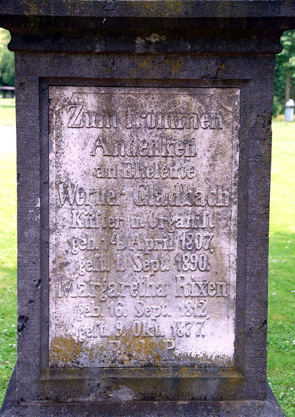 aktuell15:39, 2. Jun. 2010Vorschaubild der Version vom 15:39, 2. Jun. 2010900 × 1.272 (889 KB)KlausErdmann (Diskussion • Beiträge){{Information |Beschreibung = '''Grabstätte der Eheleute Werner Küster''' auf dem Alten Friedhof an der St. Martinuskirche in Rommerskirchen-Nettesheim |Quelle = selbst fotografiert |Urheber = Klaus Erdmann |Dat