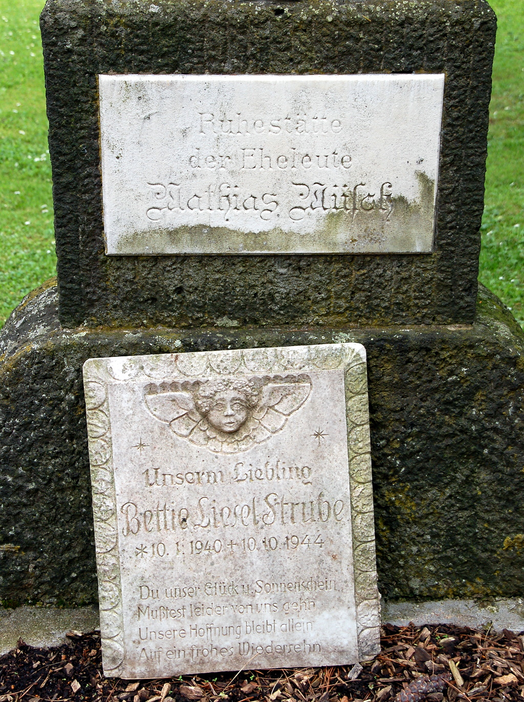 Inschriften der Grabstätte der Eheleute Mathias Müsch auf dem Alten Friedhof an der St. Martinuskirche in Rommerskirchen-Nettesheim | ||||