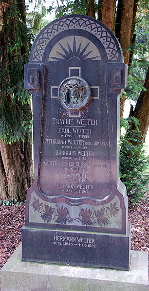 aktuell22:25, 1. Jun. 2010Vorschaubild der Version vom 22:25, 1. Jun. 2010900 × 1.759 (872 KB)KlausErdmann (Diskussion • Beiträge){{Information |Beschreibung = Grabmal der Familie Welter auf dem Alten Friedhof an der St. Martinuskirche in Rommerskirchen-Nettesheim |Quelle = selbst fotografiert |Urheber = Klaus Erdmann |Datum = 1. Juni 2010 |