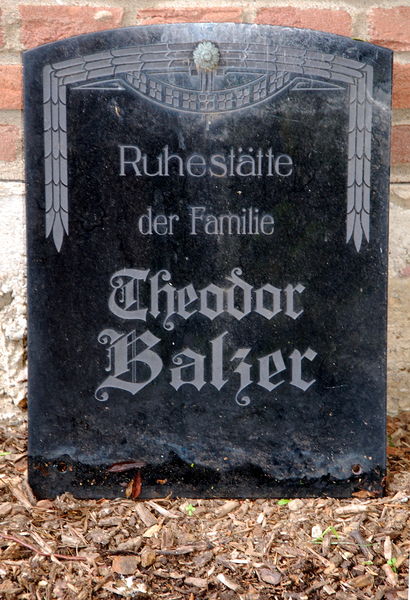Bruchstück des Grabsteines der Familie Theodor Balzer auf dem Alten Friedhof an der St. Martinuskirche in Rommerskirchen-Nettesheim | ||||