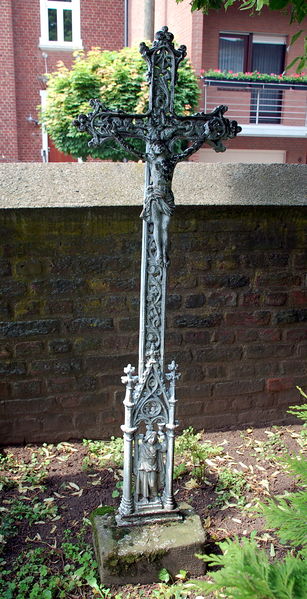 Anonymes stählernes Grabkreuz auf dem Alten Friedhof an der St. Martinuskirche in Rommerskirchen-Nettesheim