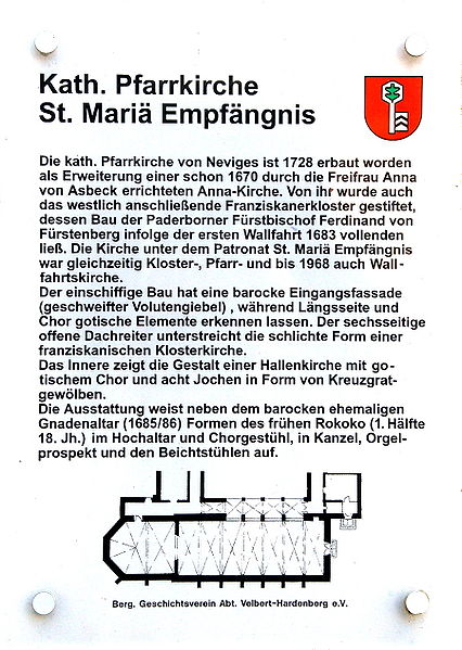 Informationstafel an der kath. Pfarrkirche St. Maria Empfängnis (bis 1968 Wallfahrtskirche) von Neviges | ||||