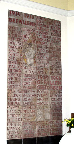 linke Gedenktafel für die Kriegsopfer der beiden Weltkriege in der Marienkapelle, Nideggen | |||