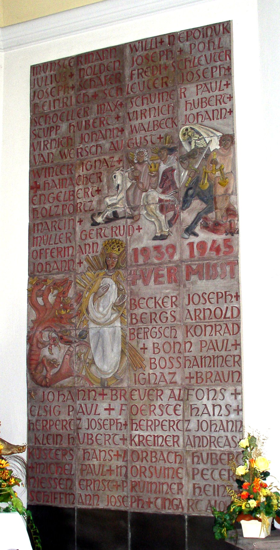 rechte Gedenktafel für die Kriegsopfer der beiden Weltkriege in der Marienkapelle, Nideggen | |||