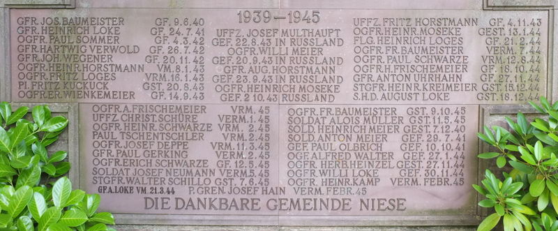 Die Namen der Kriegsopfer des II. Weltkrieges auf dem Denkmal in Niese Stadt Lügde an der Köterbergstraße
