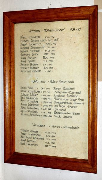 | aktuell | 19:45, 23. Sep. 2016 | 1.800 × 3.153 (1,06 MB) | KlausErdmann (Diskussion • Beiträge) | {{Information |Beschreibung = ;Gedenktafel mit den Namen der Kriegsopfer :in der St. Willibrordkirche in Nöthen |Quelle = selbst fotografiert |Urheber = K.Erdmann |Datum = 23.09.2016 |Scans = |Genehmigung = {{s |