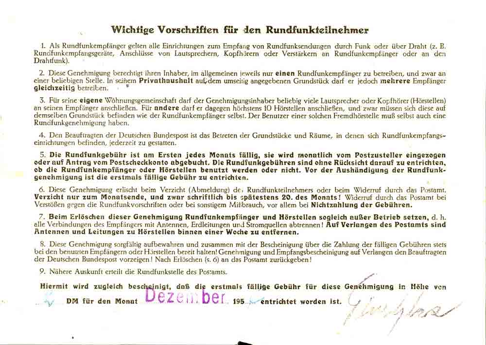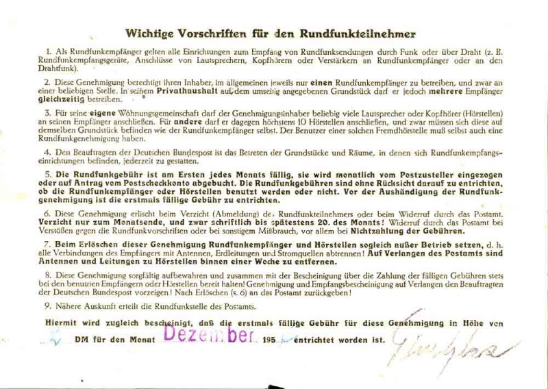 | aktuell | 12:06, 1. Jan. 2006 | 1.000 × 710 (74 KB) | Bodo-stratmann (Diskussion • Beiträge) | Rückseite der Rundfunkgenehmigung |