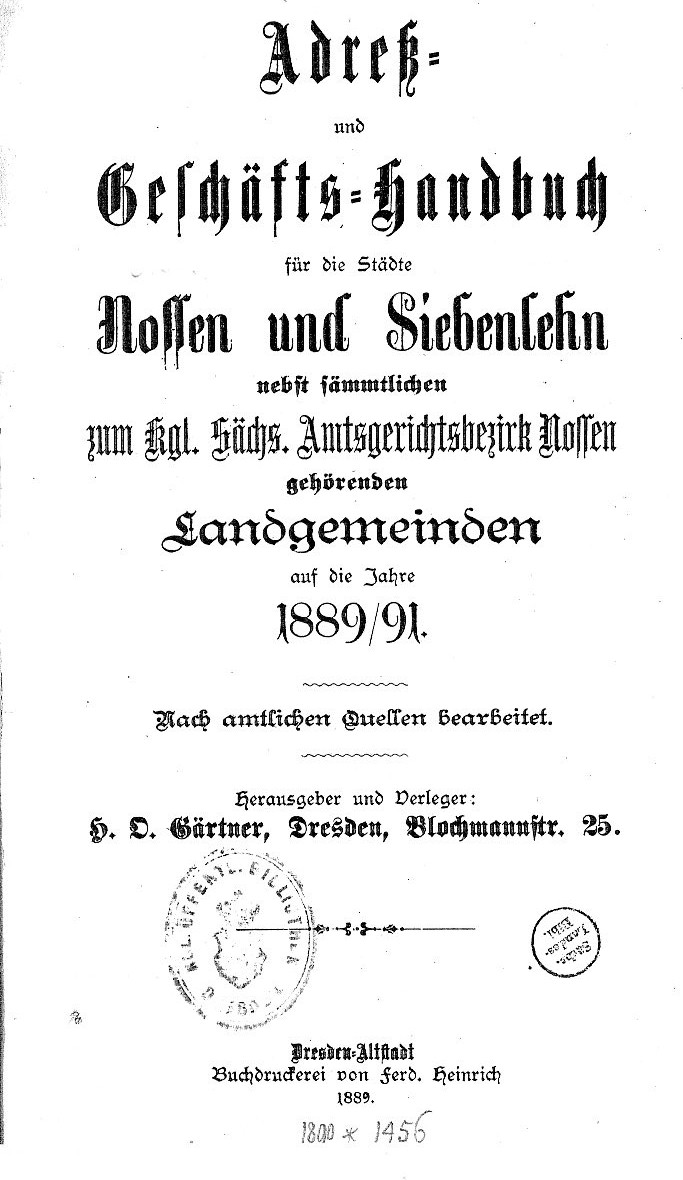 Titelblatt des Adressbuches für den Amtsgerichtsbezirk Nossen 1889-91 |
