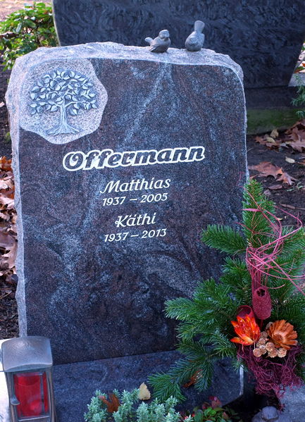 aktuell08:48, 22. Nov. 2014Vorschaubild der Version vom 08:48, 22. Nov. 20141.600 × 2.215 (971 KB)KlausErdmann (Diskussion • Beiträge){{Information |Beschreibung = Grabstein auf dem Friedhof von Oekoven ;Matthias Offermann 1937-2005 ;Käthi Offermann 1937-2013 |Quelle = selbst fotografiert |Urheber = Kateer Nov. 2014 |Datum = |Scans = |Geneh