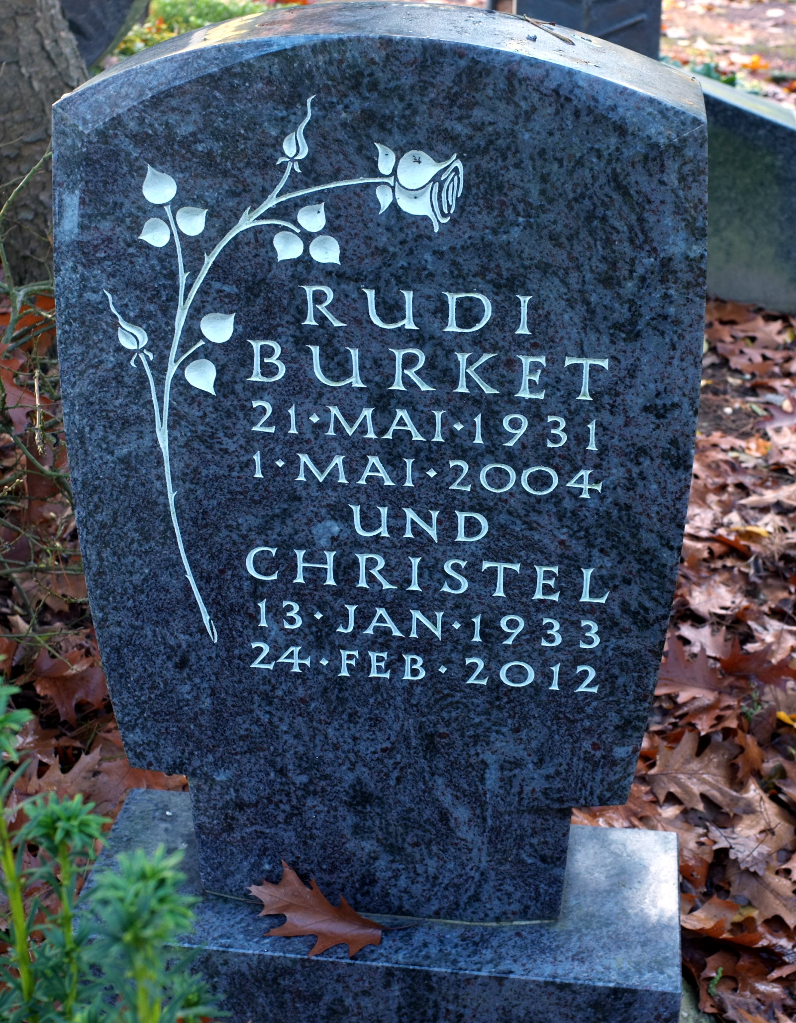aktuell08:52, 22. Nov. 2014Vorschaubild der Version vom 08:52, 22. Nov. 20141.600 × 2.055 (825 KB)KlausErdmann (Diskussion • Beiträge){{Information |Beschreibung = Grabstein auf dem Friedhof von Oekoven ;Rudi Burket 1931-2004 ;Christel Burket 1933-2012 |Quelle = selbst fotografiert |Urheber = Kateer Nov. 2014 |Datum = |Scans = |Genehmigung =