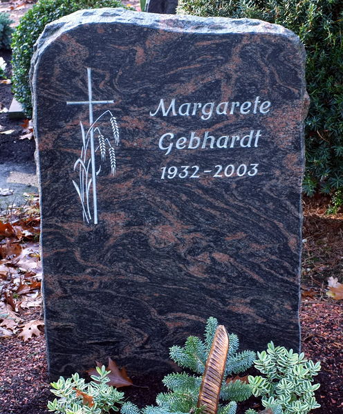 | aktuell | 08:57, 22. Nov. 2014 | 1.566 × 1.891 (876 KB) | KlausErdmann (Diskussion • Beiträge) | {{Information |Beschreibung = Grabstein auf dem Friedhof von Oekoven ;Margarete Gebhardt 1932-2003 |Quelle = selbst fotografiert |Urheber = Kateer Nov. 2014 |Datum = |Scans = |Genehmigung = {{self|Cc-by-nc-sa- |