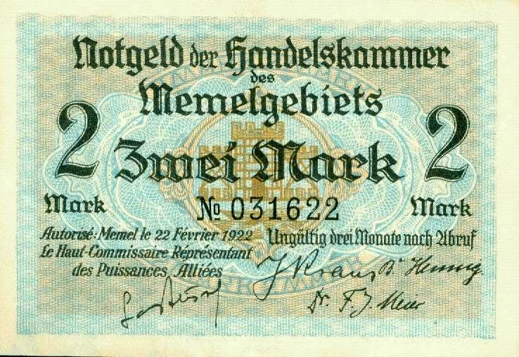 Datei:Ort Memel Notgeld 2 Mark r.jpg