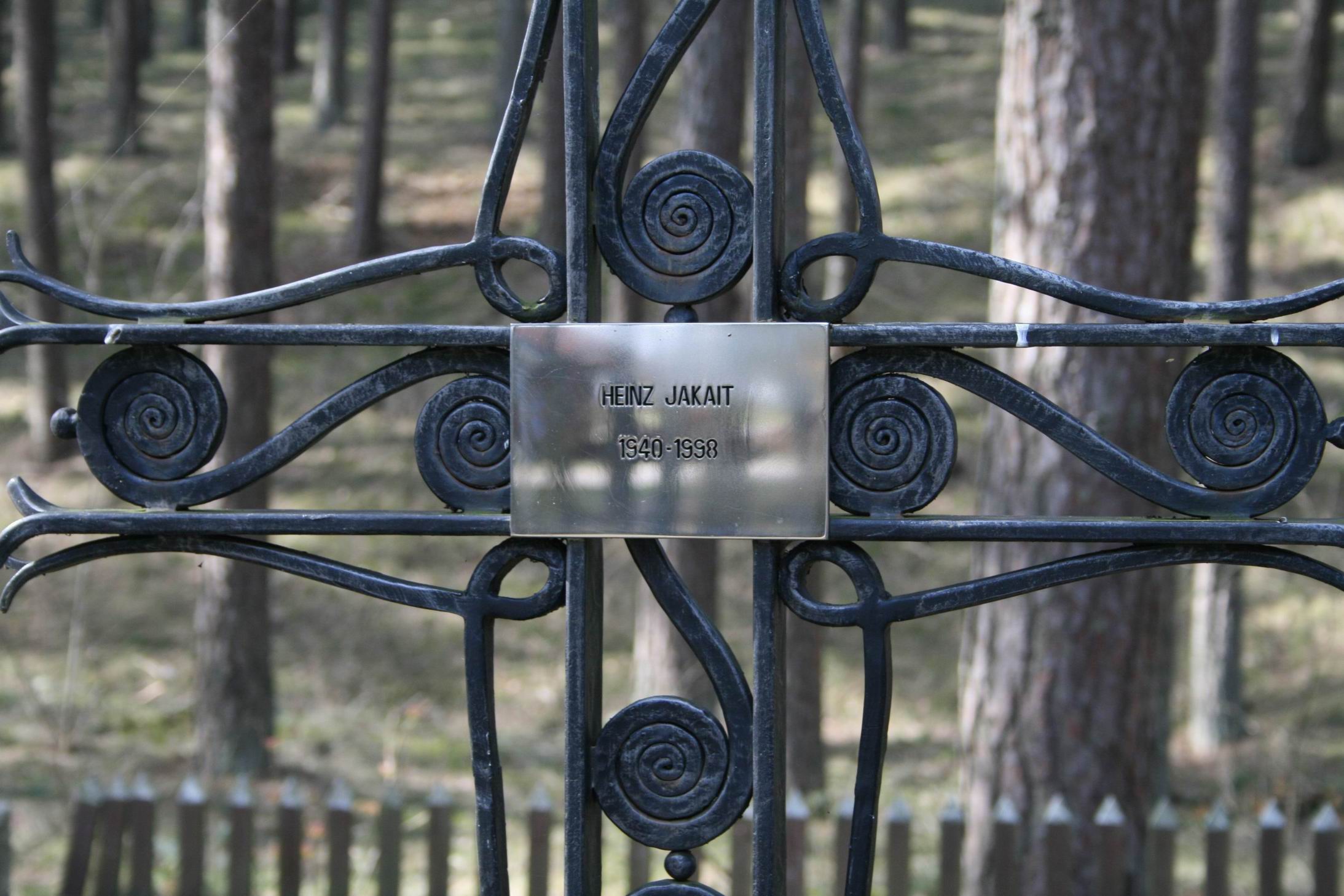 Datei:Ort Preil Friedhof Metallkreuze Familie Jakeit-Peleikis Detail linkes Kreuz.jpg