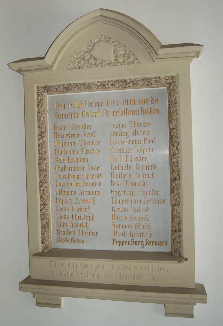 • Beschreibung: Rechte Kriegergedenktafel in der St. Margaretha-Kirche in Ostenfelde.