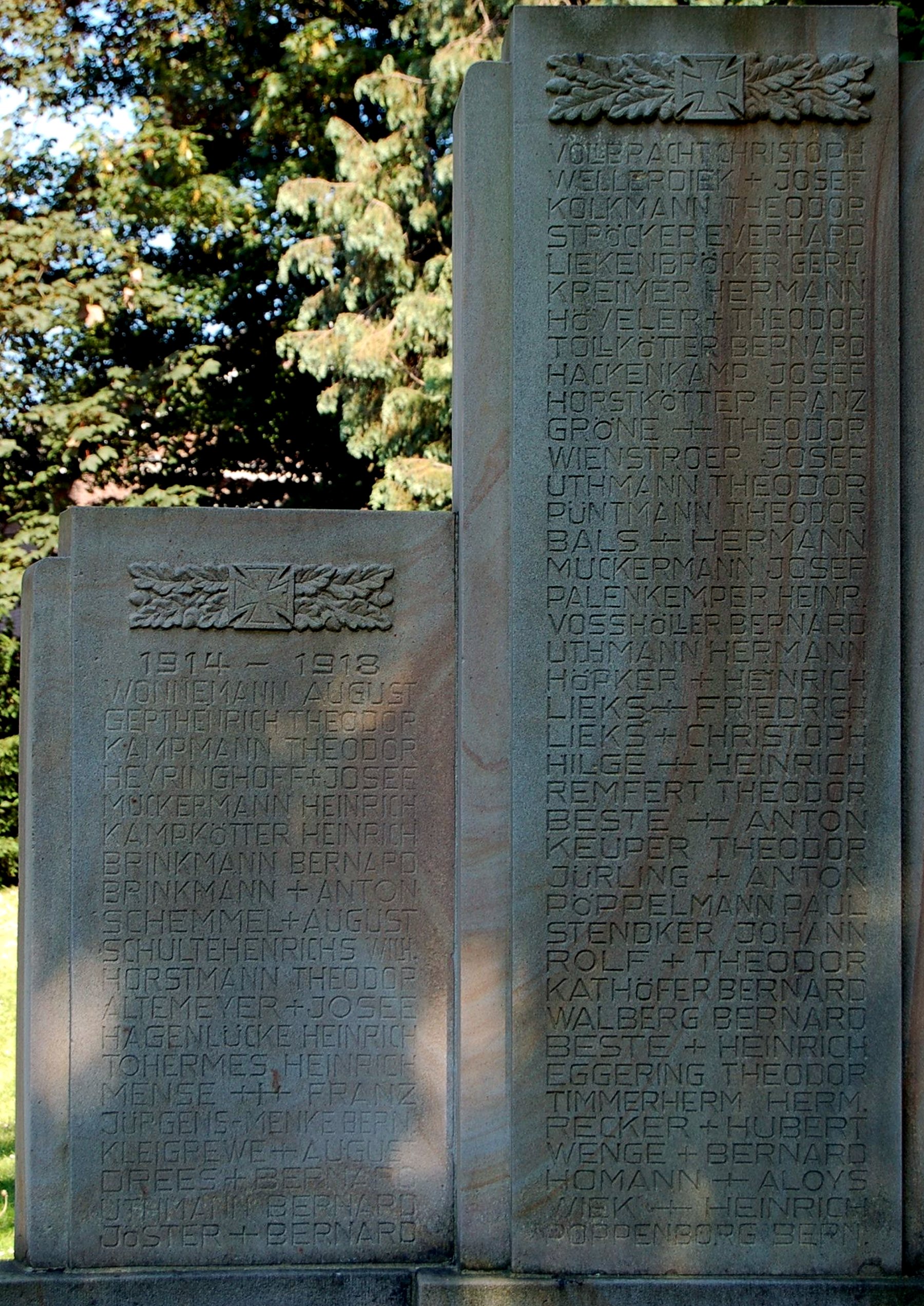Tafeln 1 u. 2 des Denkmals für die Kriegsopfer des I. Weltkrieges in Ostenfelde