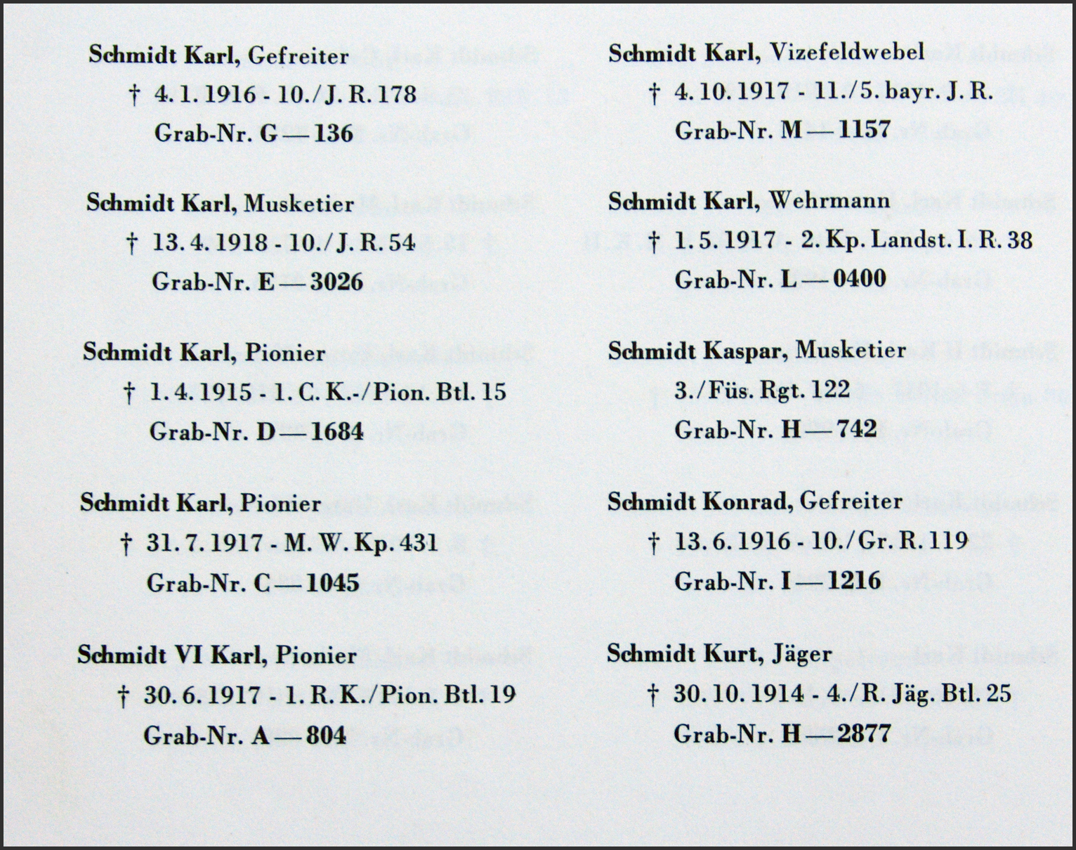 - Beschreibung: Gedenkbucheintrag von Karl Schmidt auf der Kriegsgräberstätte Menen