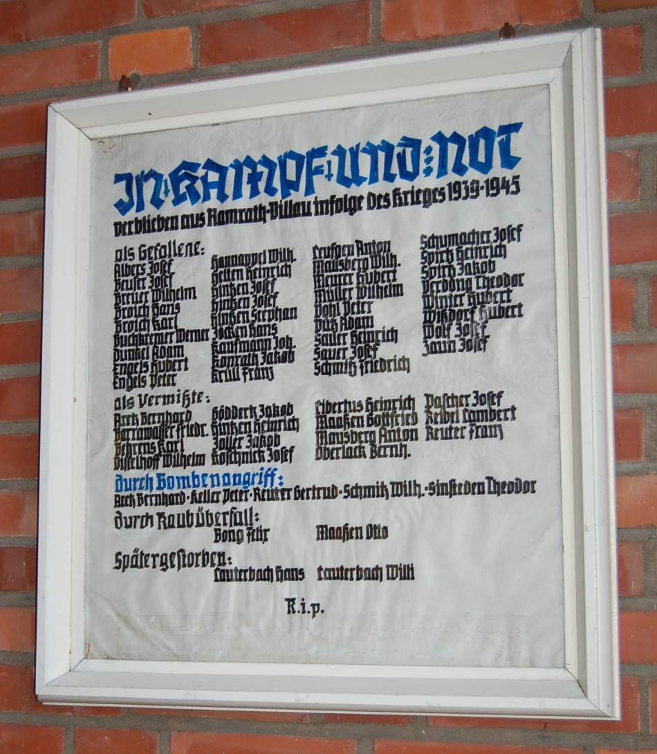 - Beschreibung: Gedenktafel für die Opfer des 2.Weltkrieges in Ramrath und Villau (Rommerskirchen)
