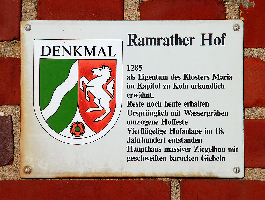 | aktuell | 14:39, 19. Dez. 2009 | 1.024 × 773 (476 KB) | KlausErdmann (Diskussion • Beiträge) | {{Information |Beschreibung = Denkmalplakette des Ramrather Hofes |Quelle = |Urheber = |Datum = |Scans = |Genehmigung = |Andere Versionen = |Anmerkungen = }} |