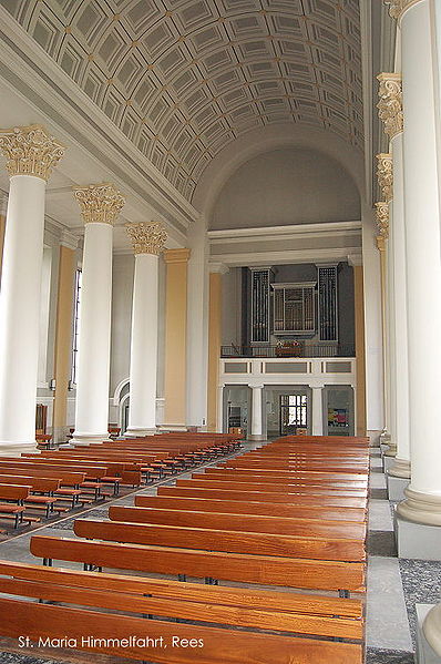 • Beschreibung: Innenansicht zum Eingang der kath. Pfarrkirche St. Maria Himmelfahrt in Rees.