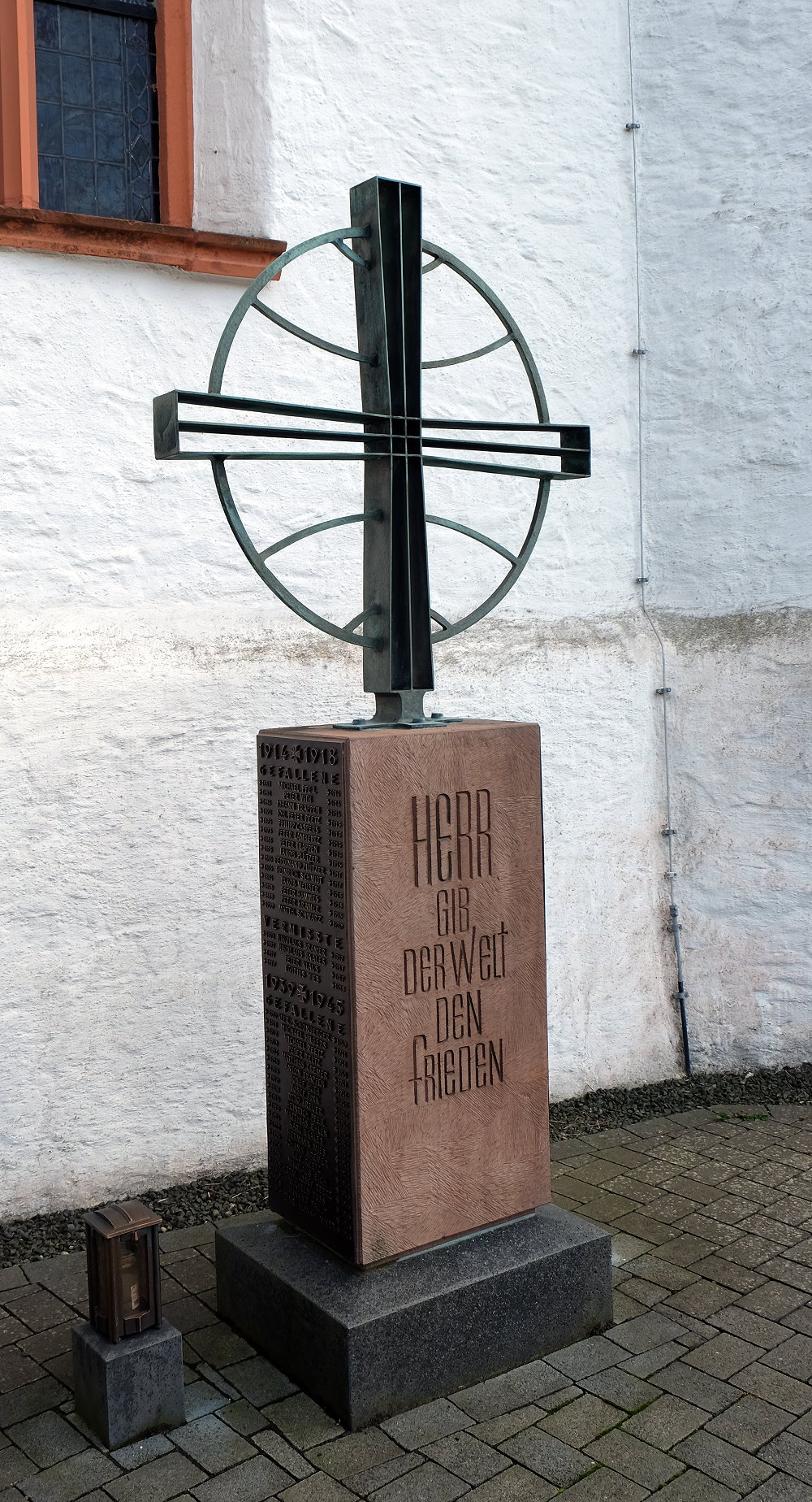 Das Denkmal für die Opfer der beiden Weltkriege an der kath. Kirche von Ripsdorf | ||||