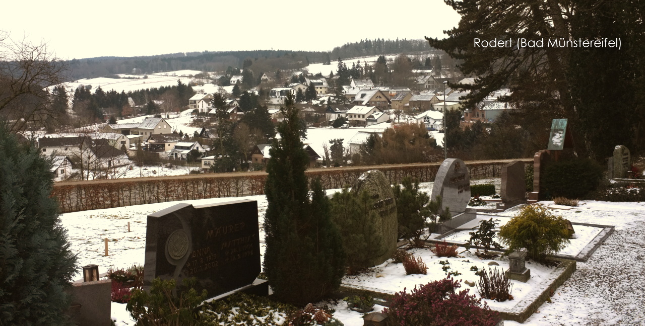 Blick vom winterlichen Friedhof auf Rodert | |||