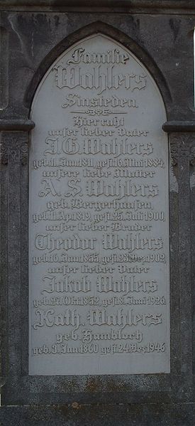 | aktuell | 08:42, 6. Jun. 2009 | 600 × 1.306 (107 KB) | KlausErdmann (Diskussion • Beiträge) | {{Information |Beschreibung = Grabmal auf dem alten Friedhof in Rommerskirchen<br /> '''Ruhestätte der Familie Wahlers, Sinsteden''' (obere Inschrift) |Quelle = selbst fotografiert |Urheber = Kateer 6 June 200 |