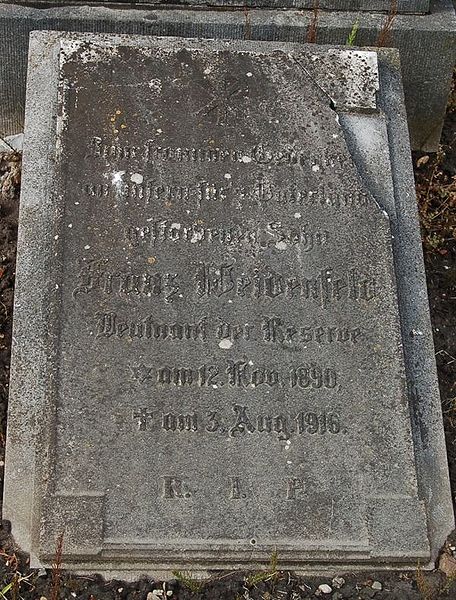 aktuell21:39, 6. Jun. 2009Vorschaubild der Version vom 21:39, 6. Jun. 2009600 × 789 (133 KB)KlausErdmann (Diskussion • Beiträge){{Information |Beschreibung = Grabmal auf dem alten Friedhof in Rommerskirchen<br /> '''Gedenkstein Franz Weidenfeld''' |Quelle = selbst fotografiert |Urheber = Kateer 6 June 2009 (CEST) |Datum = Mai 2007 |Scan