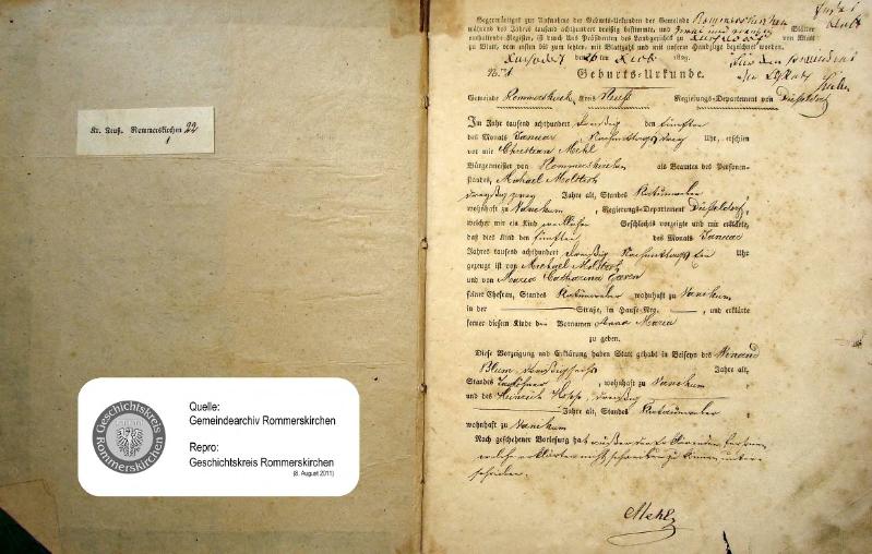 "Standesamtregister aus dem Gemeindearchiv Rommerskirchen"