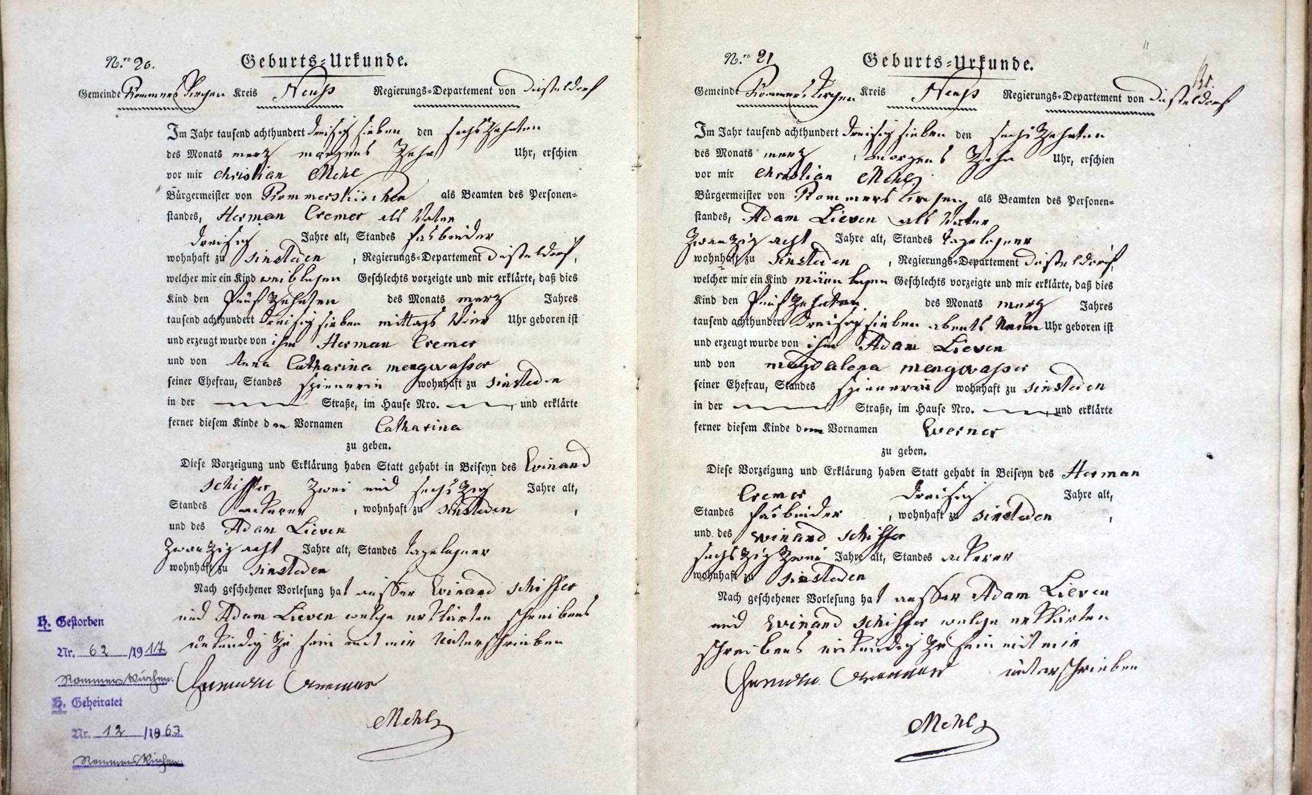 "Standesamtregister aus dem Gemeindearchiv Rommerskirchen"