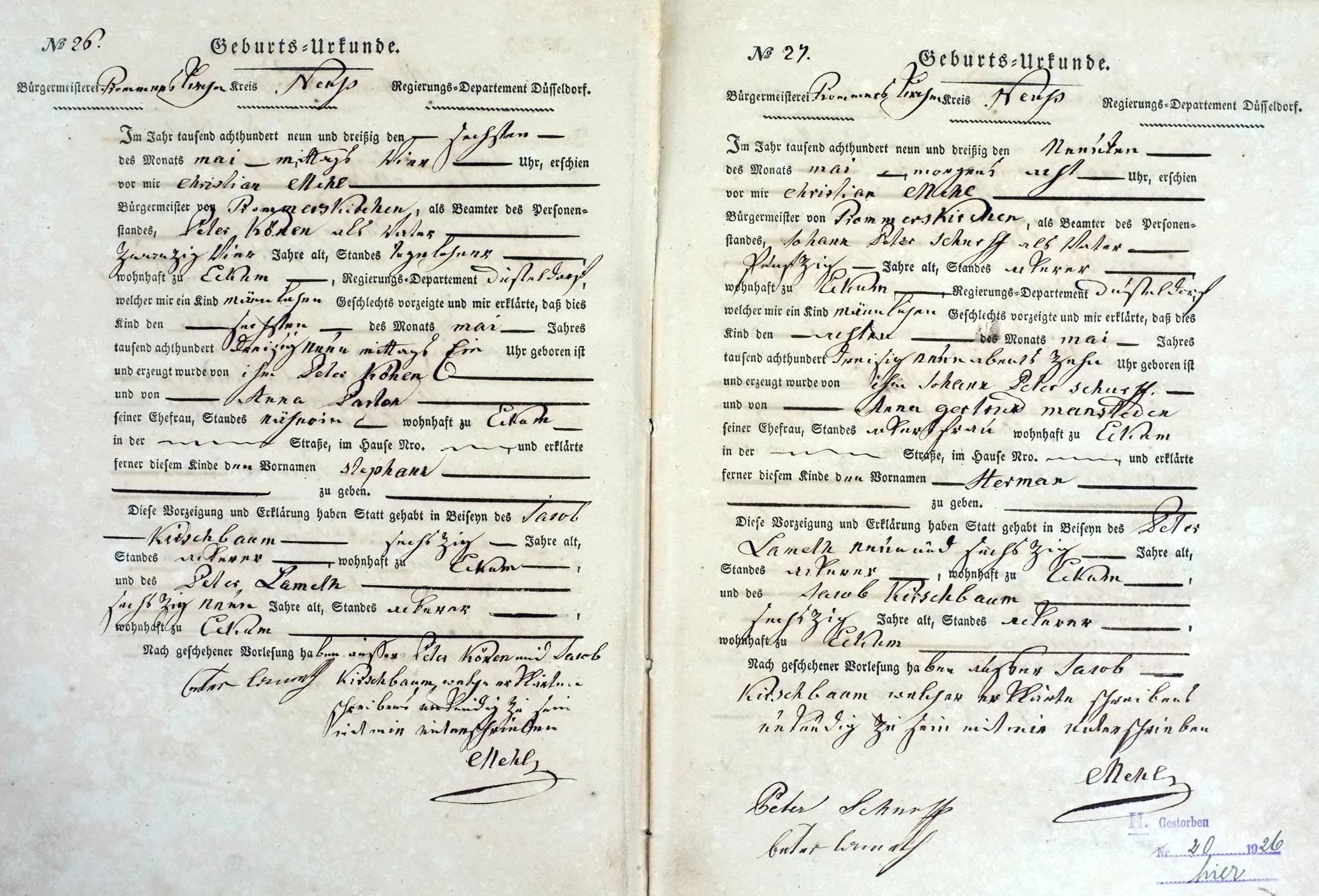 "Standesamtregister aus dem Gemeindearchiv Rommerskirchen"