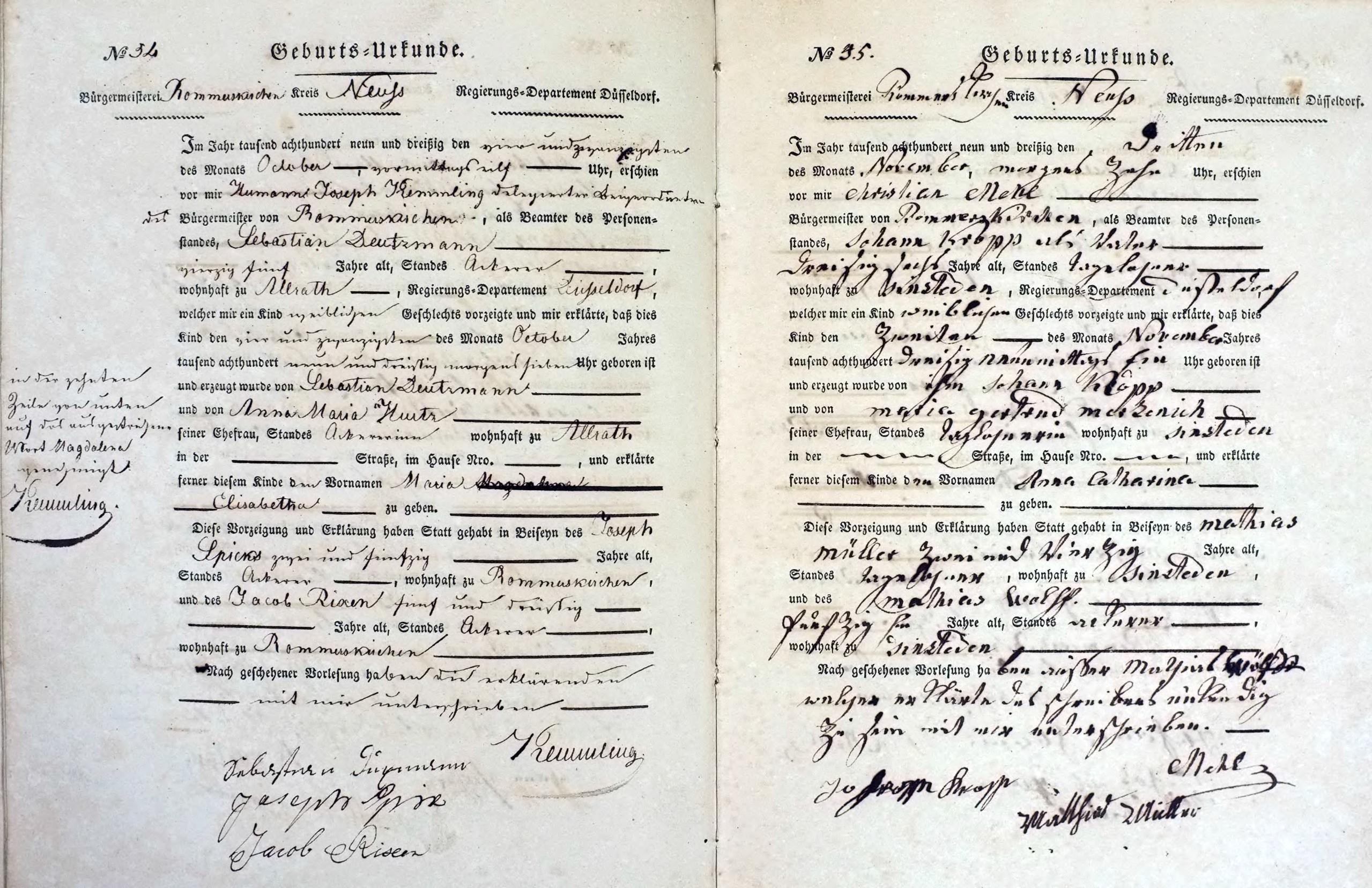 "Standesamtregister aus dem Gemeindearchiv Rommerskirchen"