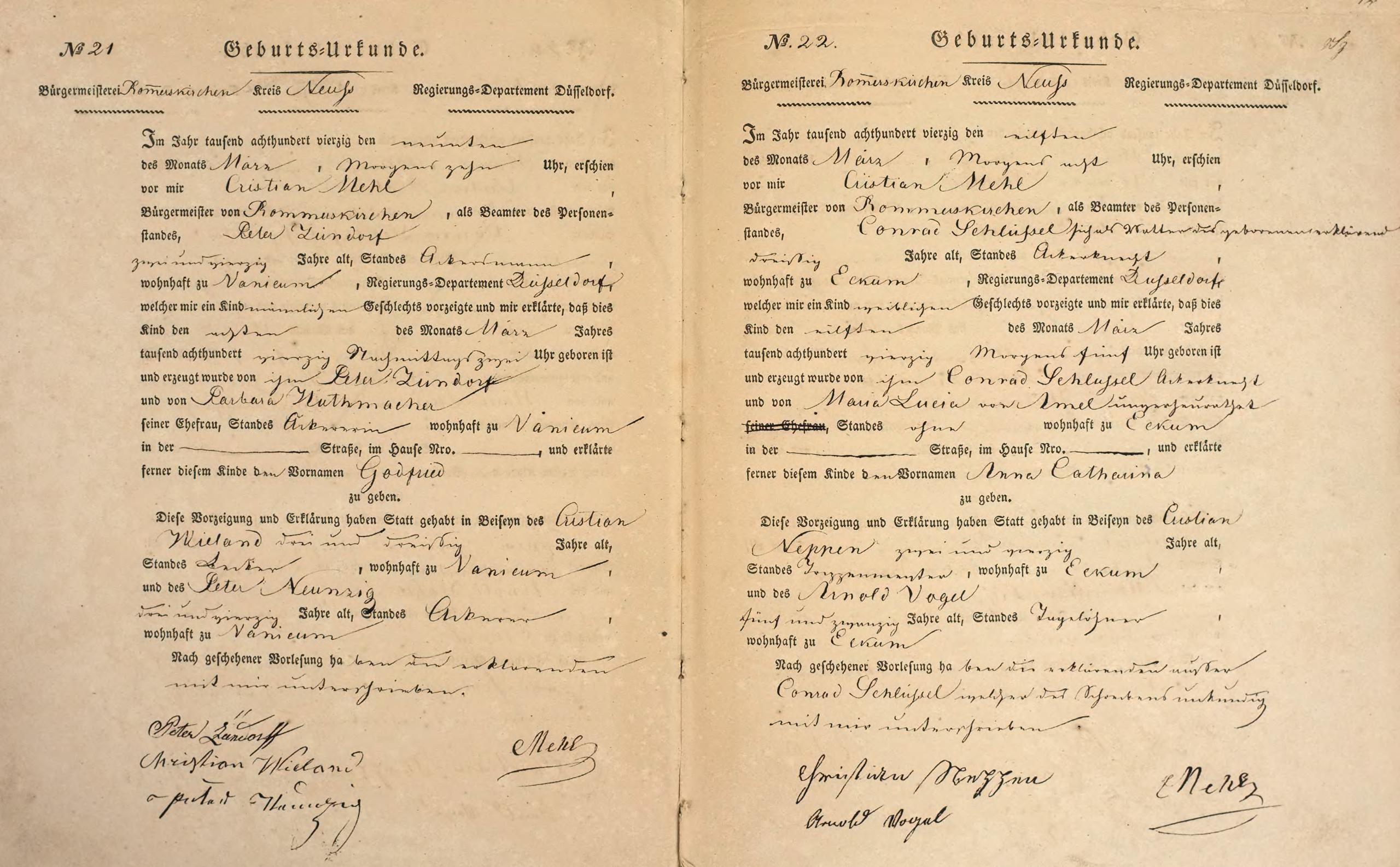 "Standesamtregister aus dem Gemeindearchiv Rommerskirchen"