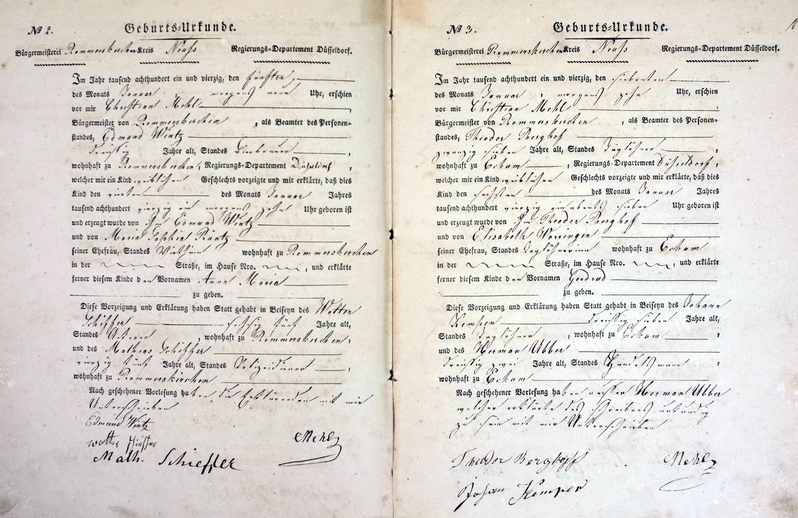 "Standesamtregister aus dem Gemeindearchiv Rommerskirchen"