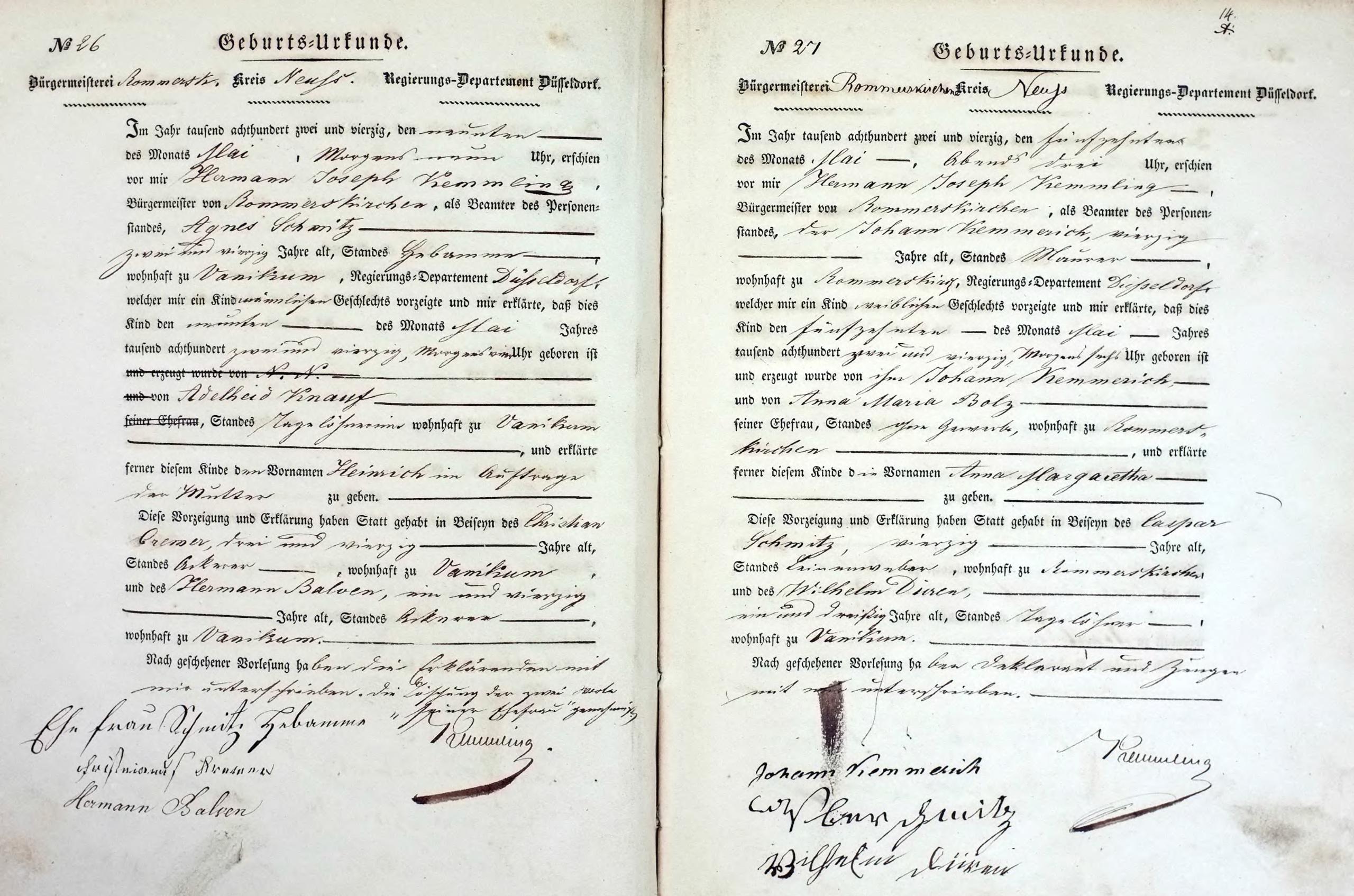"Standesamtregister aus dem Gemeindearchiv Rommerskirchen"