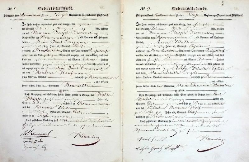 "Standesamtregister aus dem Gemeindearchiv Rommerskirchen"