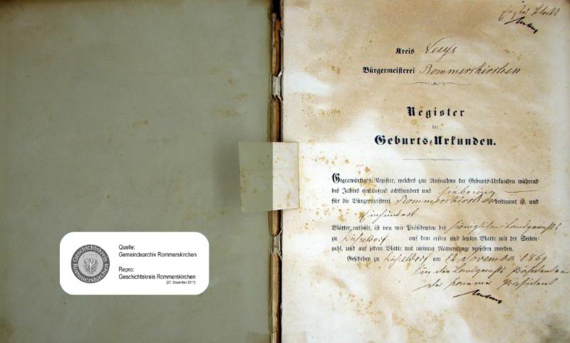 "Standesamtregister aus dem Gemeindearchiv Rommerskirchen"