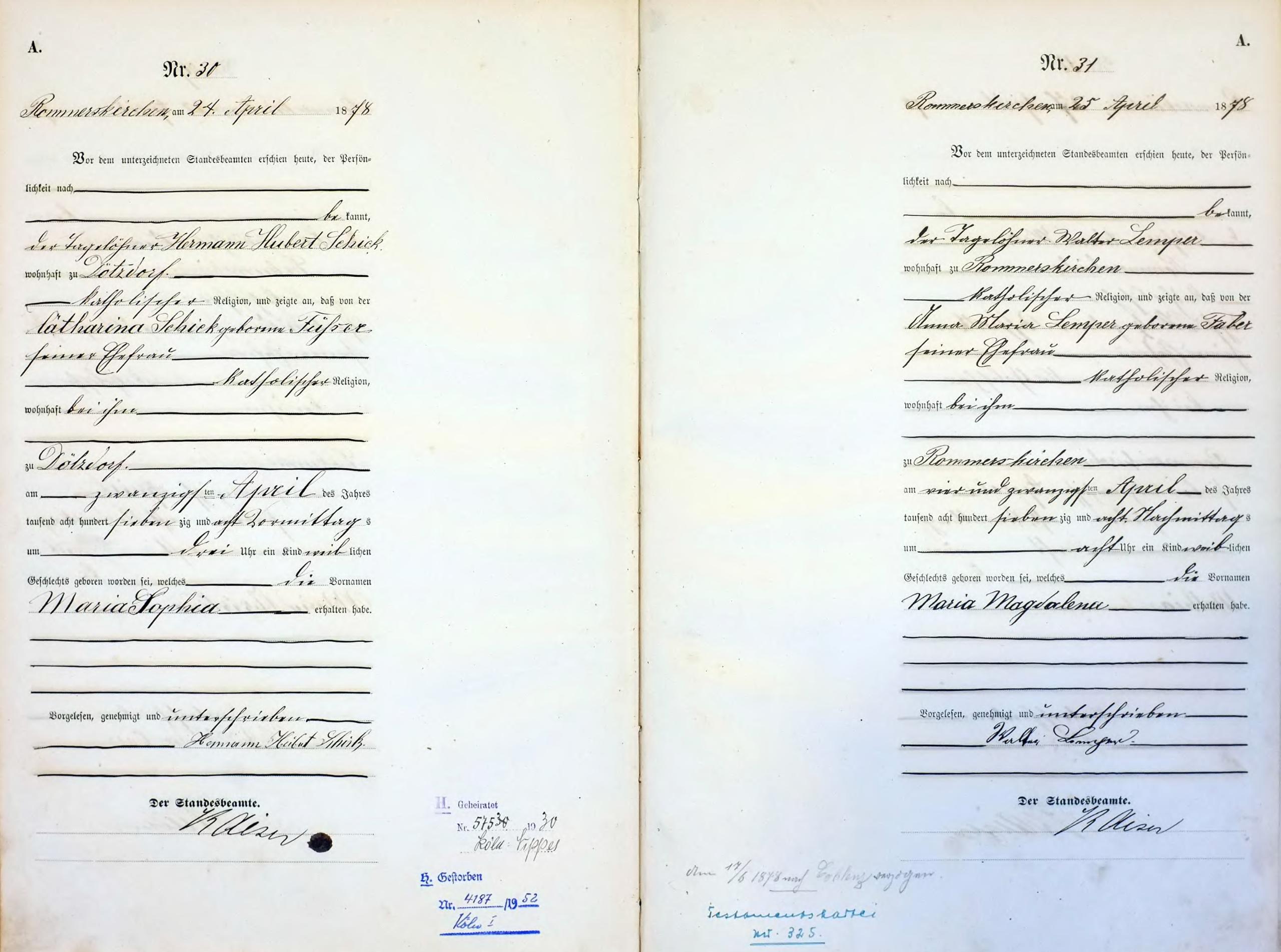 "Standesamtregister aus dem Gemeindearchiv Rommerskirchen"