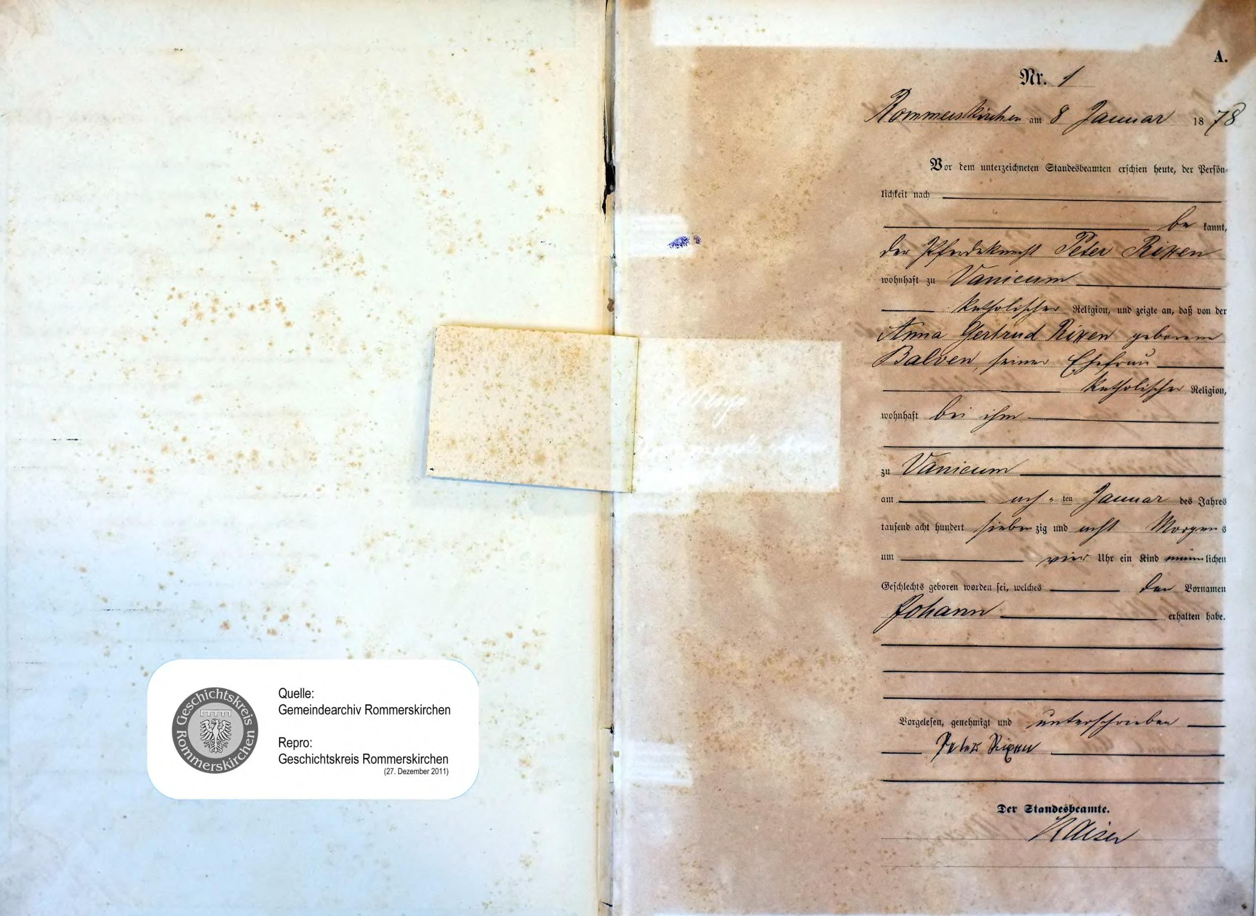 "Standesamtregister aus dem Gemeindearchiv Rommerskirchen"