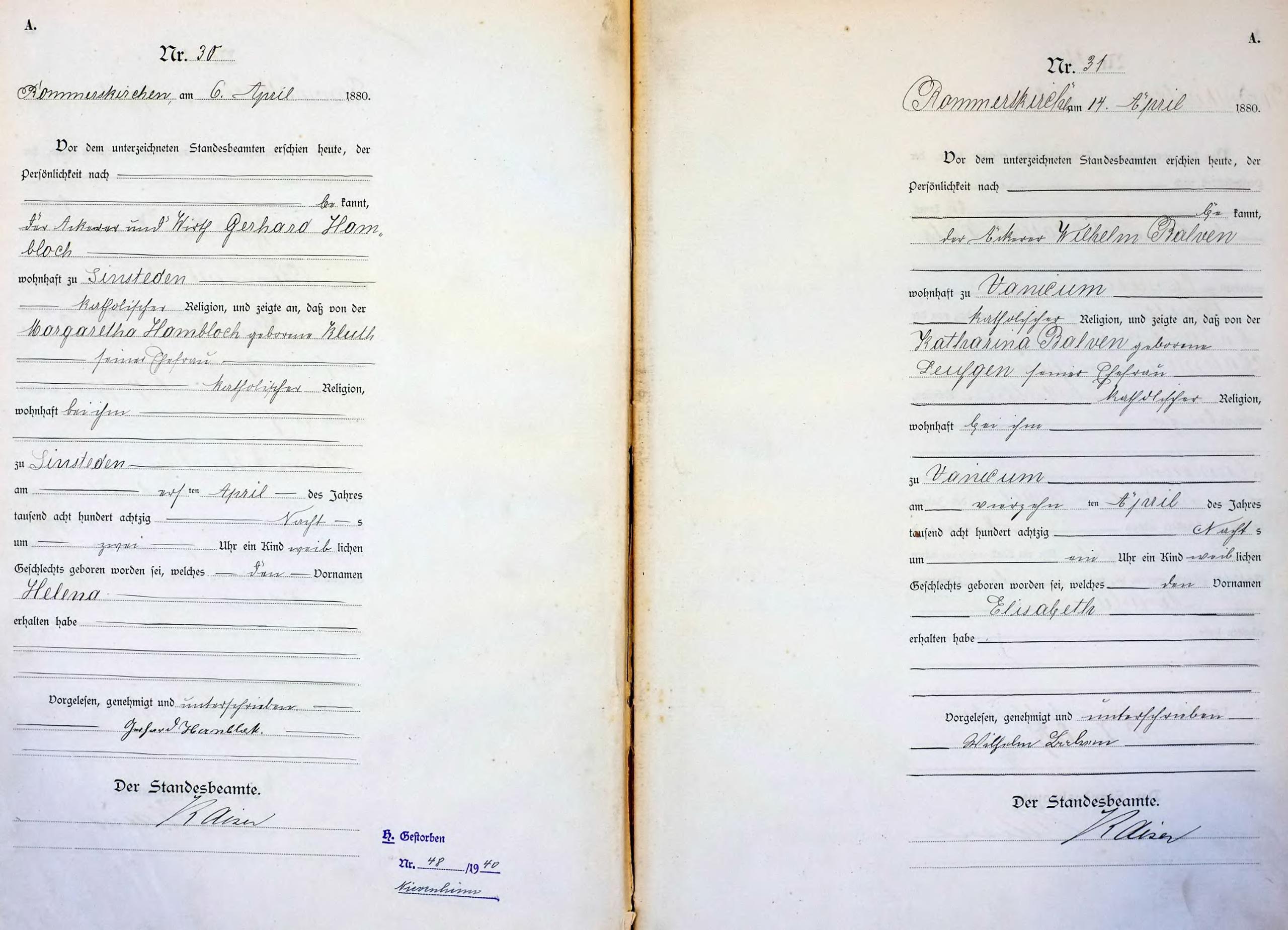 "Standesamtregister aus dem Gemeindearchiv Rommerskirchen"