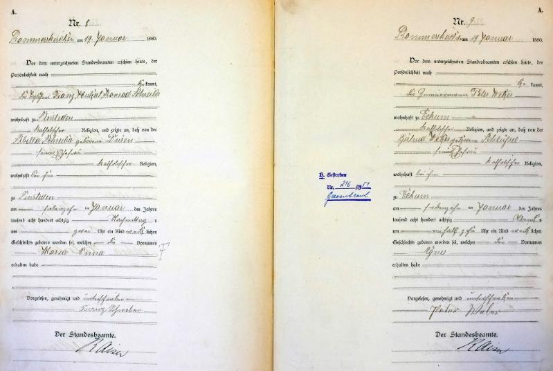 | aktuell | 12:48, 4. Jan. 2012 | 1.606 × 2.448, 42 Seiten (14,74 MB) | KlausErdmann (Diskussion • Beiträge) | {{Information |Beschreibung = ;Bürgermeisterei Rommerskirchen, Register der Geburts-Urkunden für das Jahr 1880 |Quelle = Gemeindearchiv Rommerskirchen |Urheber = |Datum = 1880 |Scans = [[User:KlausErdmann|Klaus Er |