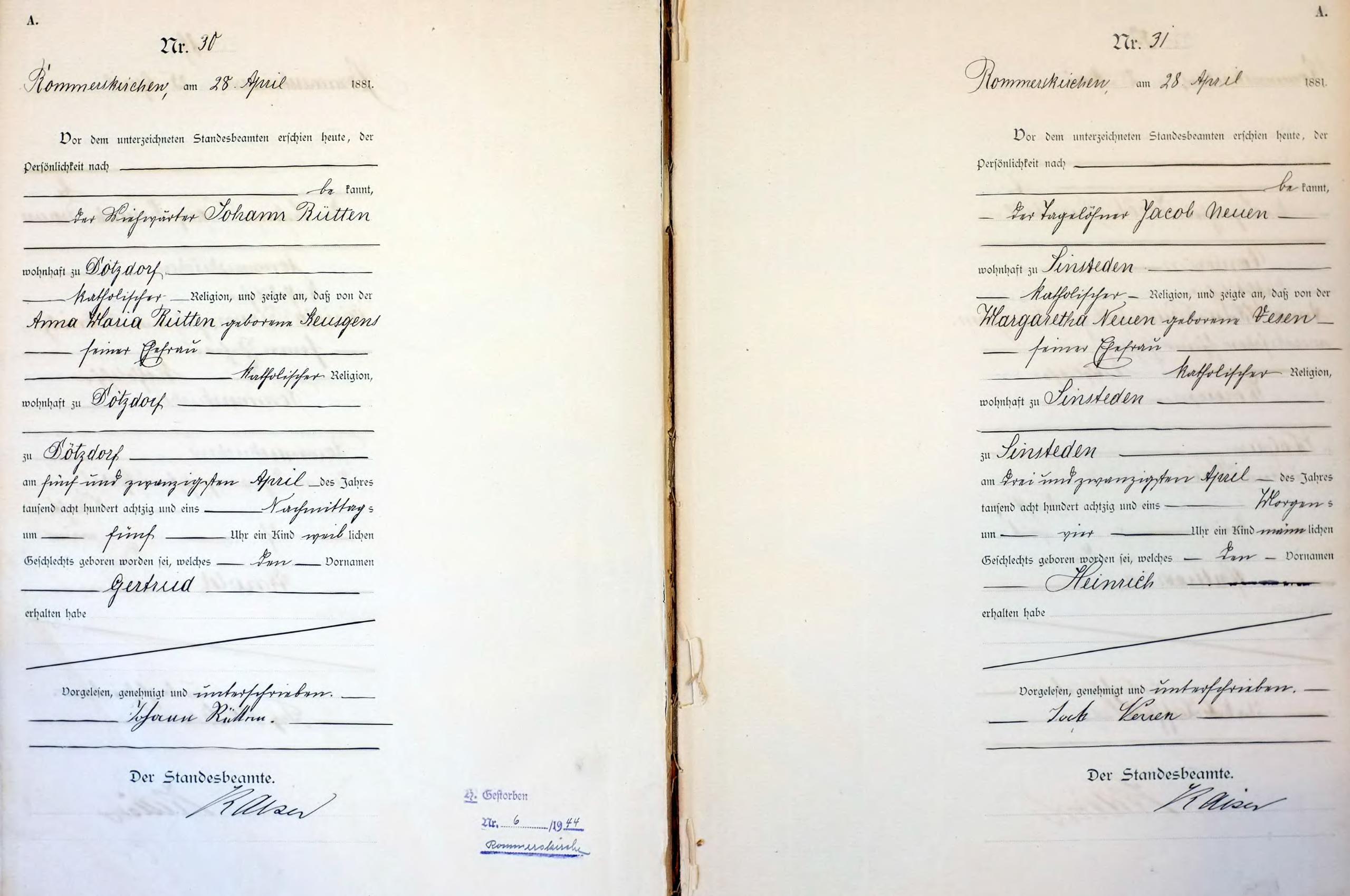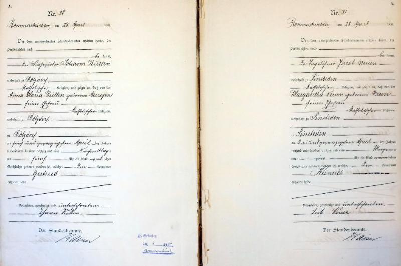 "Standesamtregister aus dem Gemeindearchiv Rommerskirchen"