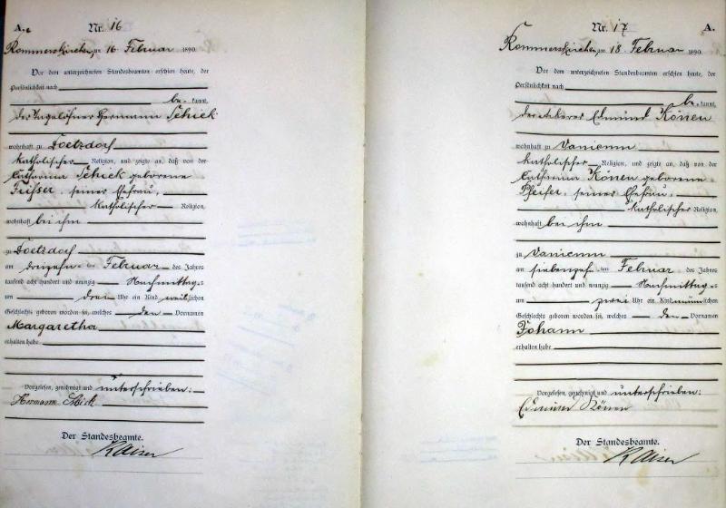 Bürgermeisterei Rommerskirchen, Register der Geburts-Urkunden für das Jahr 1890