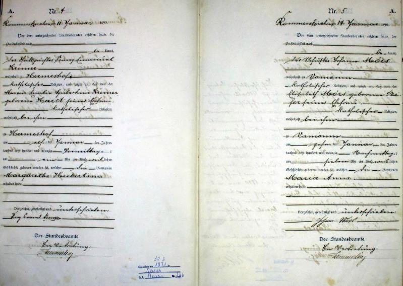 Bürgermeisterei Rommerskirchen, Register der Geburts-Urkunden für das Jahr 1890