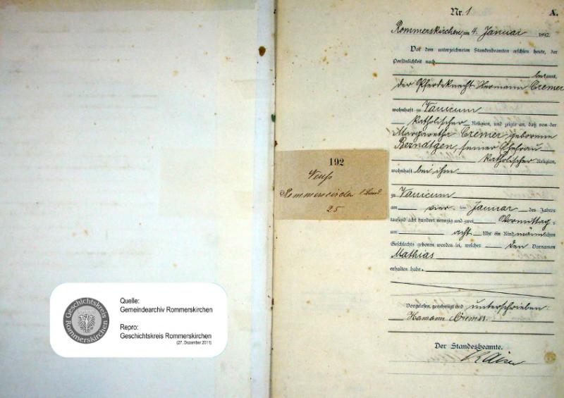"Standesamtregister aus dem Gemeindearchiv Rommerskirchen"