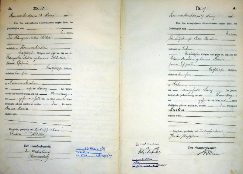 | aktuell | 15:47, 5. Jan. 2012 | 1.396 × 2.118, 40 Seiten (10,94 MB) | KlausErdmann (Diskussion • Beiträge) | {{Information |Beschreibung = ;Standesamt Rommerskirchen, Register der Geburts-Urkunden für das Jahr 1894 |Quelle = Gemeindearchiv Rommerskirchen |Urheber = |Datum = 1894 |Scans = [[User:KlausErdmann|Klaus Erdmann] |