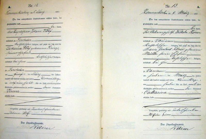 | aktuell | 09:46, 7. Jan. 2012 | 1.096 × 1.667, 38 Seiten (6,93 MB) | KlausErdmann (Diskussion • Beiträge) | {{Information |Beschreibung = ;Standesamt Rommerskirchen, Register der Geburts-Urkunden für das Jahr 1897 |Quelle = Gemeindearchiv Rommerskirchen |Urheber = |Datum = 1897 |Scans = [[User:KlausErdmann|Klaus Erdmann] |