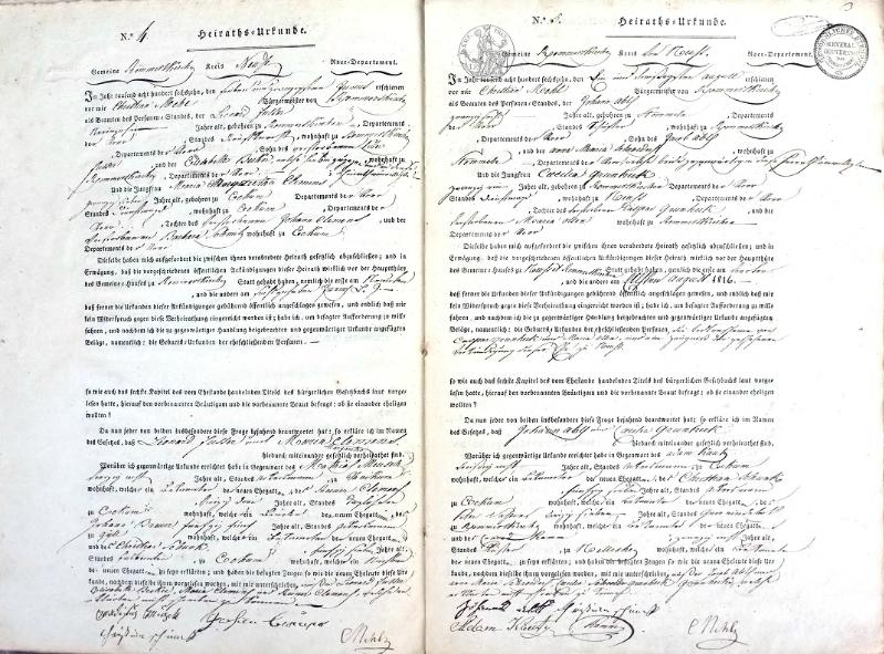 Gemeine Rommerskirchen, Register der Heirats-Urkunden von 1816